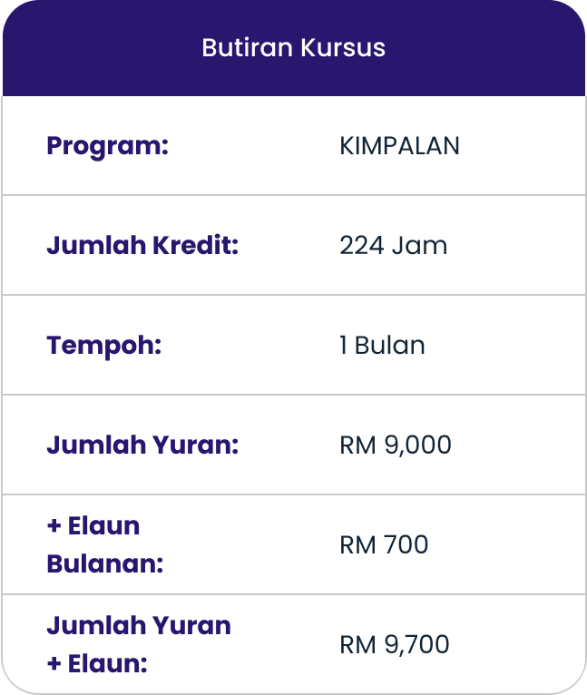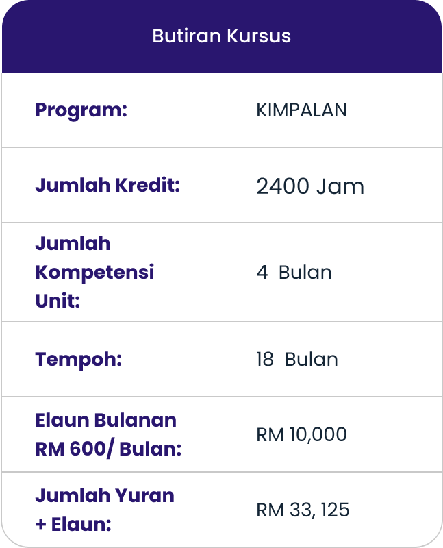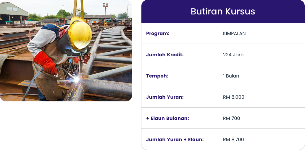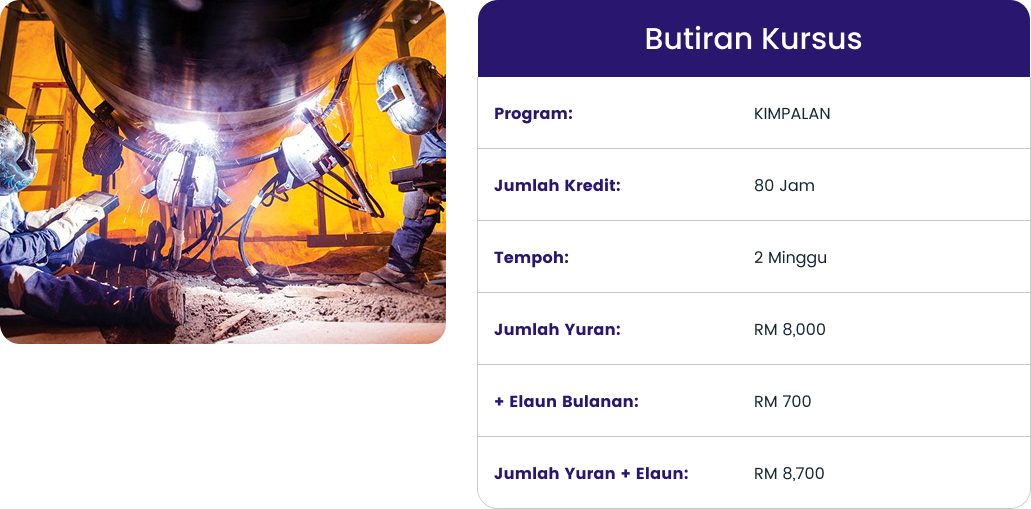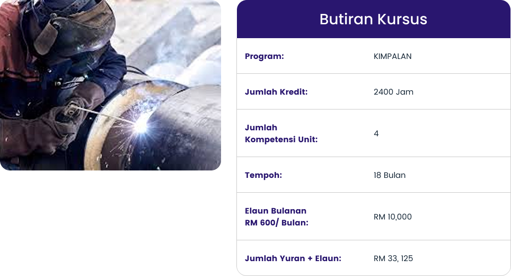 Kami menawarkan pelbagai kursus di bawah Sijil Kemahiran Malaysia (SKM) Tahap 3 seperti Kimpalan (SMAW, FCAW, TIG), Automotif (Servis Diagnostik Kenderaan RIngan), lain-lain kursus teknikal TVET.
